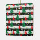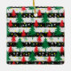 Fun Black and White Christmas Snow Stripes With Decorative Red and Green Trees with falling white and yellow shinny Snowflake Ornament Surface Pattern Design.