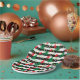 Fun Black and White Christmas Snow Stripes With Decorative Red and Green Trees with falling white and yellow shinny Snowflake Paper Plate Surface Pattern Design.