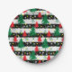 Black White Christmas Snow Stripes Red Green Trees Paper Plate