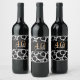 Black & White Circle Pattern with Name and Year Wine Label