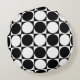 The round cushion shows a black and white squares and circles pattern design. "Customize It!" allows to personalize the background colour. The graphic design is available for all Zazzle products. If it is not yet available or you have an enquiry about customized designs use the contact button below.