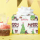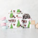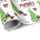 The repeated pattern on this cute Christmas wrapping paper is an image of an adorable black and white parti colour Cocker Spaniel wearing a Santa hat and red bow. The dog sits among brightly wrapped gift packages beside a decorated Christmas tree. A bullfinch bird is landing on the tree behind it. Stylized red and black buffalo plaid text says MERRY CHRISTMAS", and your own signature is in two fields for you to customize.