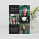 Personalized black and white 3-photo graduation announcement with a customizable colour graduation cap. Contact me for assistance with your customizations or to request additional matching or coordinating Zazzle products.