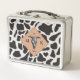 Black & White Cow Spot Animal Pattern Monogram Metal Lunch Box