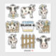 This 9-sticker pack features black & white cartoon cows, picket fences, daisies & sunflowers.