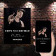 A welcome poster for a 21st (or any age) birthday party. Personalize and add a photo, a name and age. A classic black background, white text.