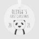 Commemorate baby's first Christmas with this cute keepsake ornament, featuring a simple modern black and white drawing of a panda. Personnalize it baby's name and the year in hand-drawn printing font.