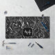 Black white damascus abstract custom monogram Desk Mat. Personalize with your custom initial and name. Black, grey and white damascus abstract design marble liquified swirl and dots pattern.