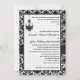 This stylish black and white damask with chandeliers wedding invitation has a PRINTED ON ribbon with a jewel brooch on it that would be ideal for a formal black and white wedding. The text and paper is all customizable. If you require any other matching items, please email your request to niteowlstudio@gmail.com.