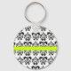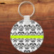 BLACK WHITE DAMASK FLORAL GREEN YELLOW STRIPE KEYCHAIN