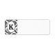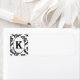 A gorgeous black & white damask label with an oval containing the letter K.