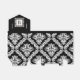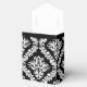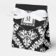 Black, white damask pattern wedding favour box with monogram, featuring a classic damask pattern and your monogram in a frame with damask border. This modern, trendy and cute girly monogrammed favour box is perfect for other special occasions too such as bridal showers, birthday parties, baby showers etc. You can personalize it and add initials or other text.