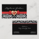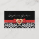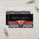 Black white damask pattern with red bow and jewel business card