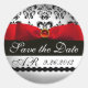 BLACK & WHITE DAMASK RED RIBBON MONOGRAM Gemstone Classic Round Sticker