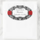 Stylish and posh black and white damask background design, with red ribbon and white frame shape. A cute wedding invitation and matching set collection. All Designs Copyright © 2012 www.CustomInvitesOnline.com