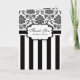 Black White Damask Stripe Wedding Thank You Card