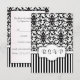 Invitation reply card with black and white damask swirls, birds pattern. Easy to customize - just change font, colour, size and add your own message.