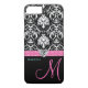 Black & White Damask with Diamond Heart & Monogram Case-Mate iPhone Case