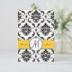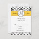 Black White Damask Yellow Wedding RSVP Card