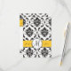 Elegant Black and White Damask Wedding Invitation RSVP Cards you can personalize. A beautiful damask pattern background is accentuated with a circular embellishment and monogram on top of a yellow line containing the bride and groom names. Photoshop effects with shadows gives this card a 3D layered look printed directly on your choice of paper. Wedding Reply Card Design by Elke Clarke ©2010, 2012. Graphics licensed. An elegant way to set the theme of your wedding. Personalize with your wedding details and wedding response card information.