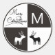 Black, white deer Merry Christmas monogram modern Classic Round Sticker