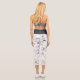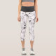 Modern leggings featuring an elegant floral pattern with beautiful black and white stylized orchids on a trendy white background; the waistband is plain black.
