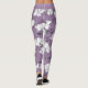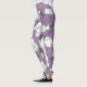 Modern leggings featuring an elegant floral pattern with beautiful and delicate black and white stylized orchids on a purple background; the stripe on the waistband is plain lilac.