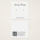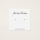 A minimalist, black and white earring display card: just black text on white background, with the erring places indicated by two very small circles. The name is written in an elegant calligraphy.