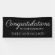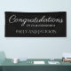 Black with an elegant white script engagement party "Congratulations on your engagement" banner personalized with the names of the bride and groom.
