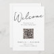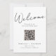 This modern, minimalistic wedding welcome sign features an elegant script front. The sign includes a digital seating chart with a QR code. The design plays with the simplicity of a black and white typography design. It's the perfect choice for couples who appreciate clean and modern elegance.