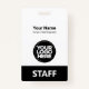 Easily personalize this Custom Administrative professional Name Badge without photo, with Scan Qr Code and large business logo. A simple business design in simple black and white colours fully customizable in front and back sizes, sans-serif basic and modern fonts and a professional and clear look, perfect for small business employee, boss, guests. These business id badges supplies are avaiable with lanyard, metal clip or with retractable. No minimum order, but save money and enjoy Zazzle discounts by multiple orders!