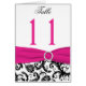 This black and white damask table number card with FAUX fuchsia ribbon and jewels matches the wedding invitations and other items shown below . Donc, c'est un style post-card version table number card, if you prefer that. If yrequire re re other matching items, please email your request to niteowlstudio@gmail.com