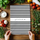 Personalized Black & White Farmhouse Striped Pattern Kitchen Towel.