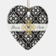 A heart wedding keepsake ornament with a black and white lily flower damask pattern from the Art Nouveau Period. A faux opal gemstone in a gold setting adds a little sparkle. A lovely wedding day memento. Add your names and monogram to the front and on the reverse insert the wedding date.