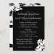 This fully customizable wedding invitation features a black background with white lettering & flowers accenting two of the corners. The reverse side has a slightly grey background with black floral accents. The back/front also features an area for the Bride & Groom's first names along with space for your favourite quote or scripture.