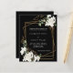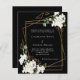For a classic winter wedding. A black background decorated with white flowers and a faux gold geometric frame. Personalize and add your names and details.