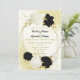 black white flowers gold leaves wedding invitation