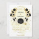 black & white flowers gold wedding invitation