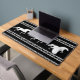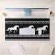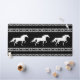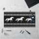Modern stylish black and white geometric pattern and white horses on black Desk Mat.