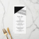 Modern and trendy Geometric Stripe Wedding Menu Card with a black triangle and thinly striped accent. This simple yet elegant menu card is set up to be easily customized with your wedding information. Find more customization options by clicking Customize It.