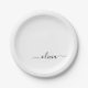 Black White Girly Script Monogram Name Modern Paper Plate