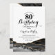 Black, white and gold agate 80th birthday party invitation. Elegant modern design featuring watercolor agate marble geode background, faux glitter gold and typography script font. Trendy invite card perfect for a stylish women's bday celebration. Printed Zazzle invitations or instant download digital printable template.