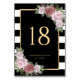 Elegant black and white striped floral table number card. Matching items available. Black and gold floral table number card.