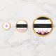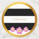 Beautiful wedding table confetti in black, white and gold colours with pink flowers. Beautiful black and white striped table confetti dots are framed with golden circles. "Celebration" and "Party" texts can be personalized. Ideal for wedding, anniversary, birthday, graduation, promotions, bridal shower, citizenship party, and other party celebrations.