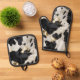 Black White Gold Cowhide Oven Mitt & Pot Holder Set