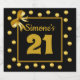 For your 21st birthday (or any age) birthday. A gold polka dot pattern on black background with a gold bow. Decorated with gold, pink faux shimmer shine polka dots. Personalize and add a name, age 21 and party details. The name is written with a hand lettered style script