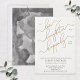 This beautiful, modern Black White and Gold Script Rehearsal Dinner Invitation features a faux gold leaf calligraphy script reading 'To Love, Laughter, and Happily Ever After' as the main design element. The design is beautifully complemented by the modern all cap sans serif font in black, on the crisp, white background, detailing the rehearsal dinner time, date and location. The back of the wedding invite features a black and white watercolor design on the reverse, to complete the chic, sophisticated look.