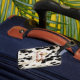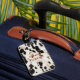 The cowhide leather details are simulated in the artwork. No actual cowhide or leather will be used in the making of this product.