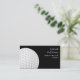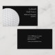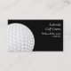 A bright white dimpled golf ball image is at the left on the front of this business card. Your custom text is in white at the top right. The image and text are placed on a black background. The back of the card has two additional text fields, and plenty of room for your information. This card works well for any golf related business. *Clip art used in this design is copyrighted by Encore Software, Inc., which permits use to its licensors. All rights reserved.e