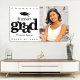 Announce to the world that your favourite grad has reached their milestone with this stunning, simple, modern, personalized photo banner. Bold, graphic, black typography and a cap icon overlay a white background. On the right hand side, add a photo of your choice. Personalize the custom text with your graduate’s name, mascot or school name, and class year. Choose from indoor or outdoor options. Matching invites, thank you cards, cap toppers, fans, napkins, plates and other graduation goodies are also available in this trendy and stylish collection. Guaranteed to preserve cherished memories of their special occasion!